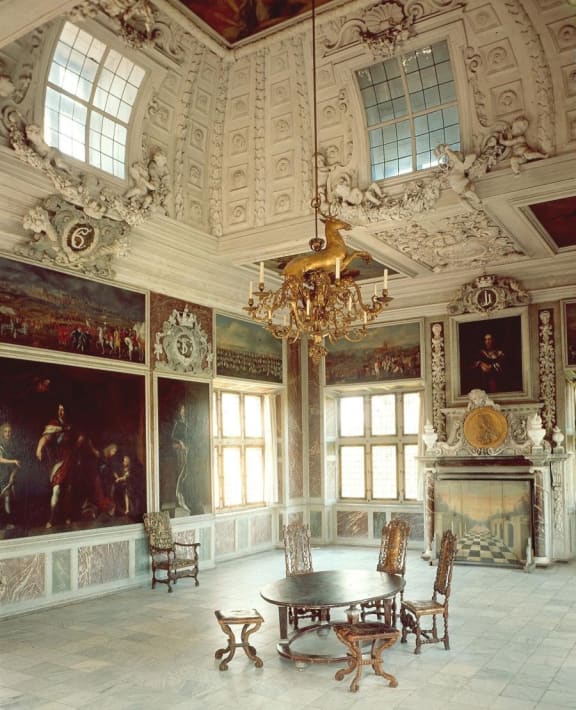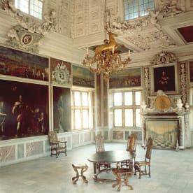 The Audience Hall at Frederiksborg , which was created as a total glorification of the absolute monarchs. In the largest portrait you see Christian V as a roman emperor