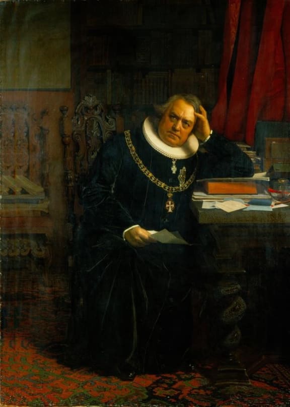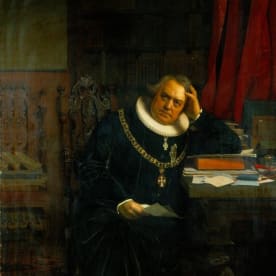 Gertner depicting Danish prime minister D G Monrad receiving a telegram from London that the peace negotiations during the war with Prussia in 1864 had broken down. He emigrated with his family to New Zealand following this.