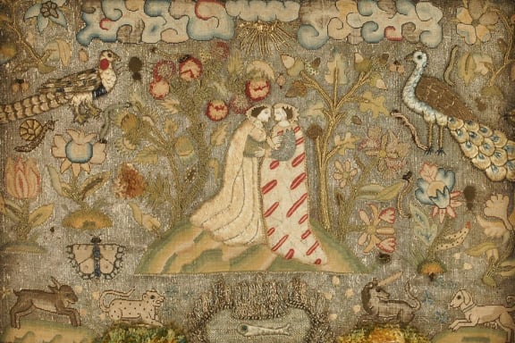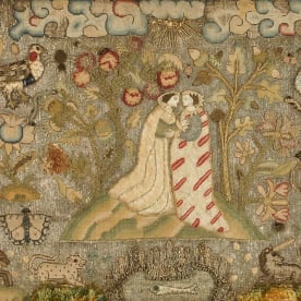 Unknown Artist. "Textile Panel with Embracing Figures" (The Visitation.) Ashmolean Museum, University of Oxford