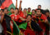 Afghan footballers celebrate 3-0 win against Pakistan, Kabul, 2013. (PHOTO: Massoud Hossaini/AFP)