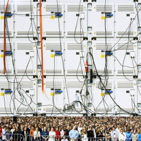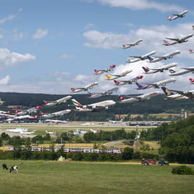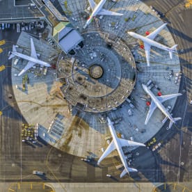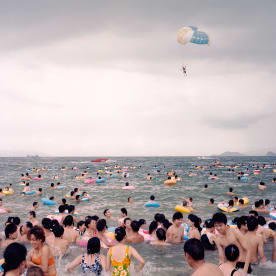 Tightly packed crowds, busy streets and skies filled with planes feature among the more than 200 photographs from around the world taken for an exhibition that was launched before the Covid-19 era of social distancing.