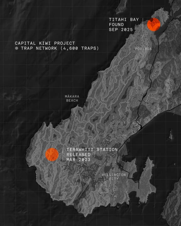 "The lesson here is how far Wellington's restored wild kiwi population has spread and how quickly. Kiwi could now be living anywhere from Pariwhero (Red Rocks) to Porirua. Kiwi can live for more than 40 years and travel great distances."